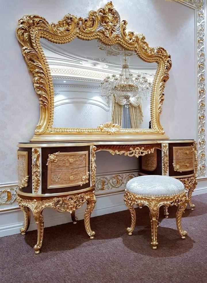 Mời quý khách hàng chiêm ngưỡng bộ bàn ghế trang điểm gỗ tự nhiên cao cấp được Nội thất luxury Quang Huy lên ý tưởng và hoàn thiện.