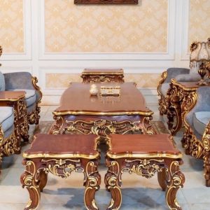 Nghệ thuật điêu khắc tinh xảo trên bộ bàn ghế hoàng gia 6 món
