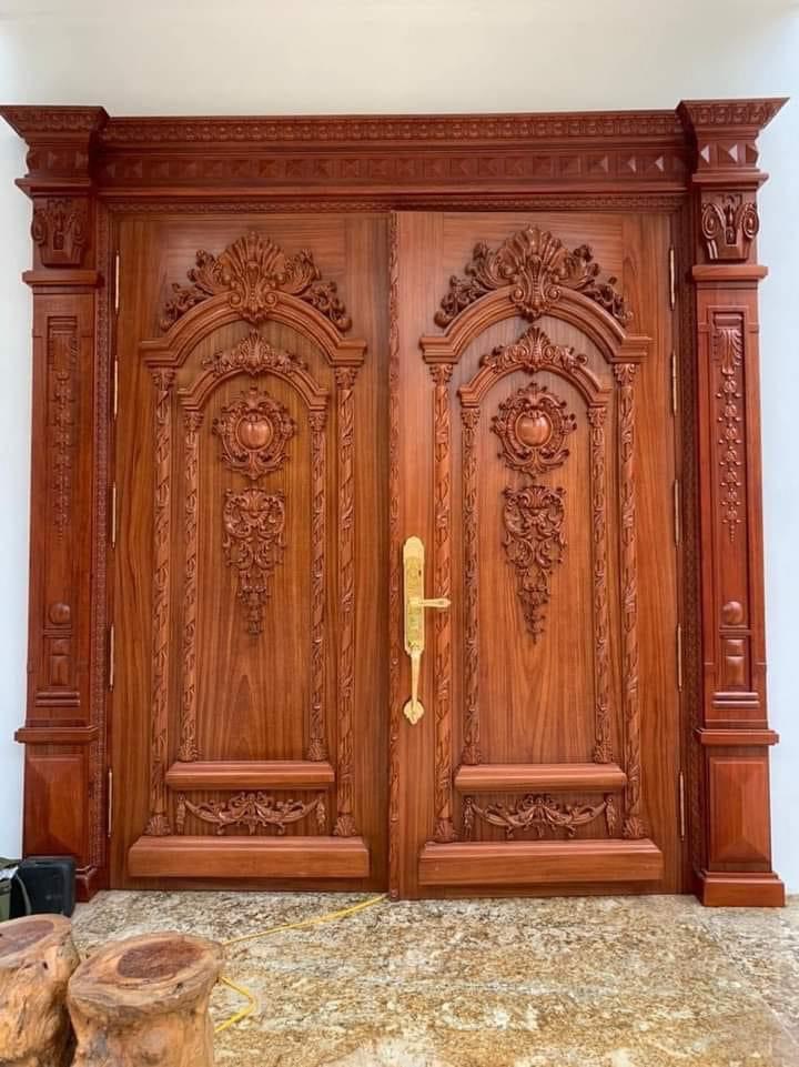 Cửa chính gỗ tự nhiên tân cổ điển QH01