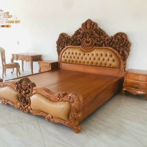 Hiện nay, có hai mẫu giường tân cổ điển phổ biến bọc da và nguyên khối. Mỗi loại đều mang vẻ đẹp riêng nhưng điểm chung là tất cả được chế tác từ gỗ gõ đỏ cao cấp. Những ưu điểm nổi bật của giường gỗ gõ đỏ bao gồm độ bền cao, không bị cong vênh, co ngót hay mối mọt theo thời gian.