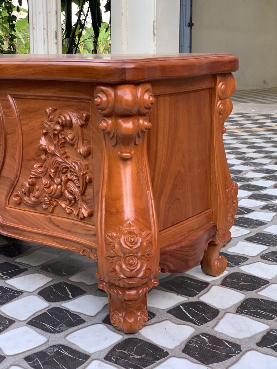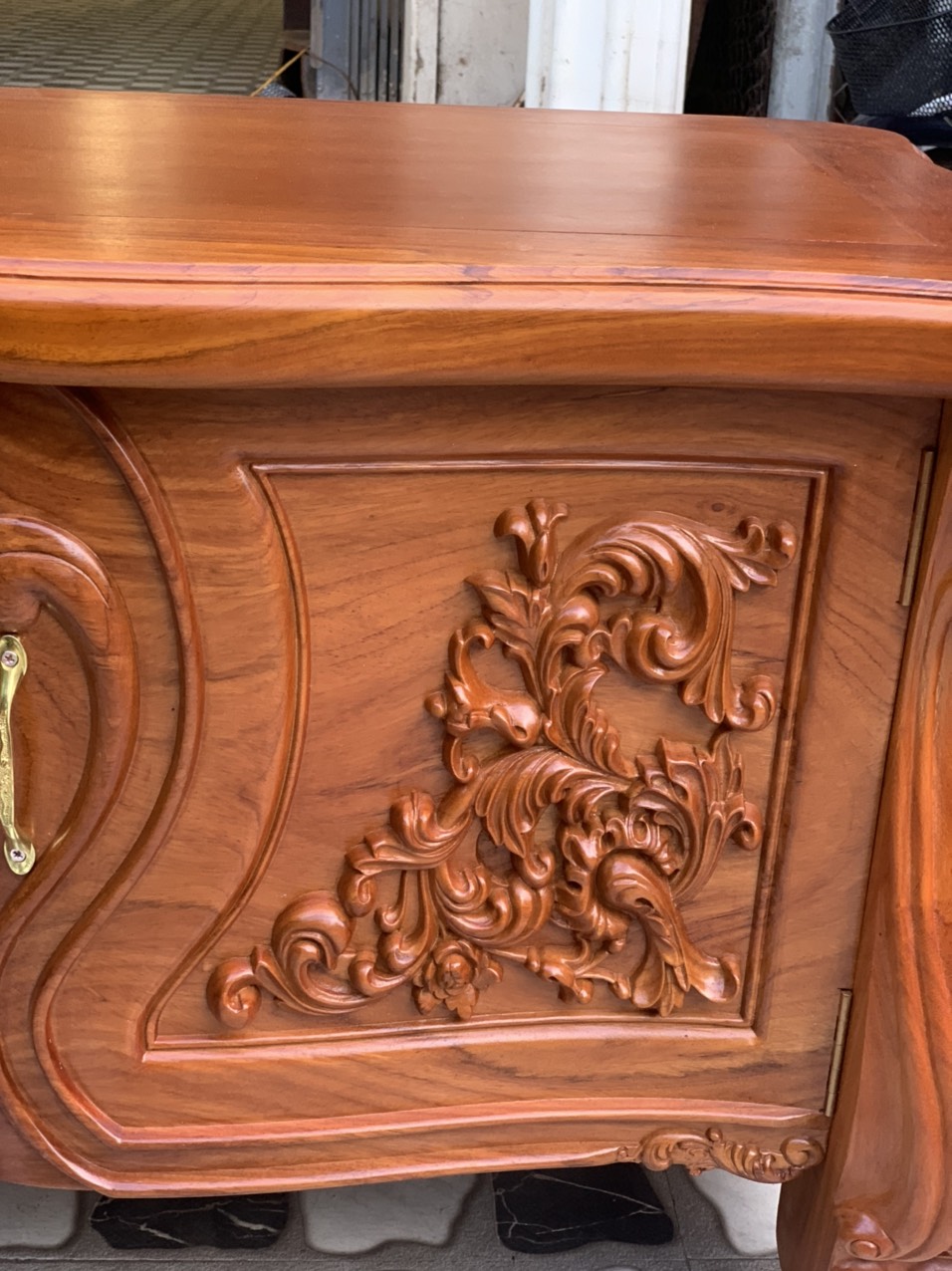 – Mẫu kệ tủ QH01 được làm từ gỗ gõ đỏ, loại gỗ tự nhiên quý hiếm có giá trị kinh tế cao. Gỗ gõ đỏ luôn đảm bảo chất lượng tốt nhất, có khả năng chống ẩm mốc và cong vênh vượt trội.