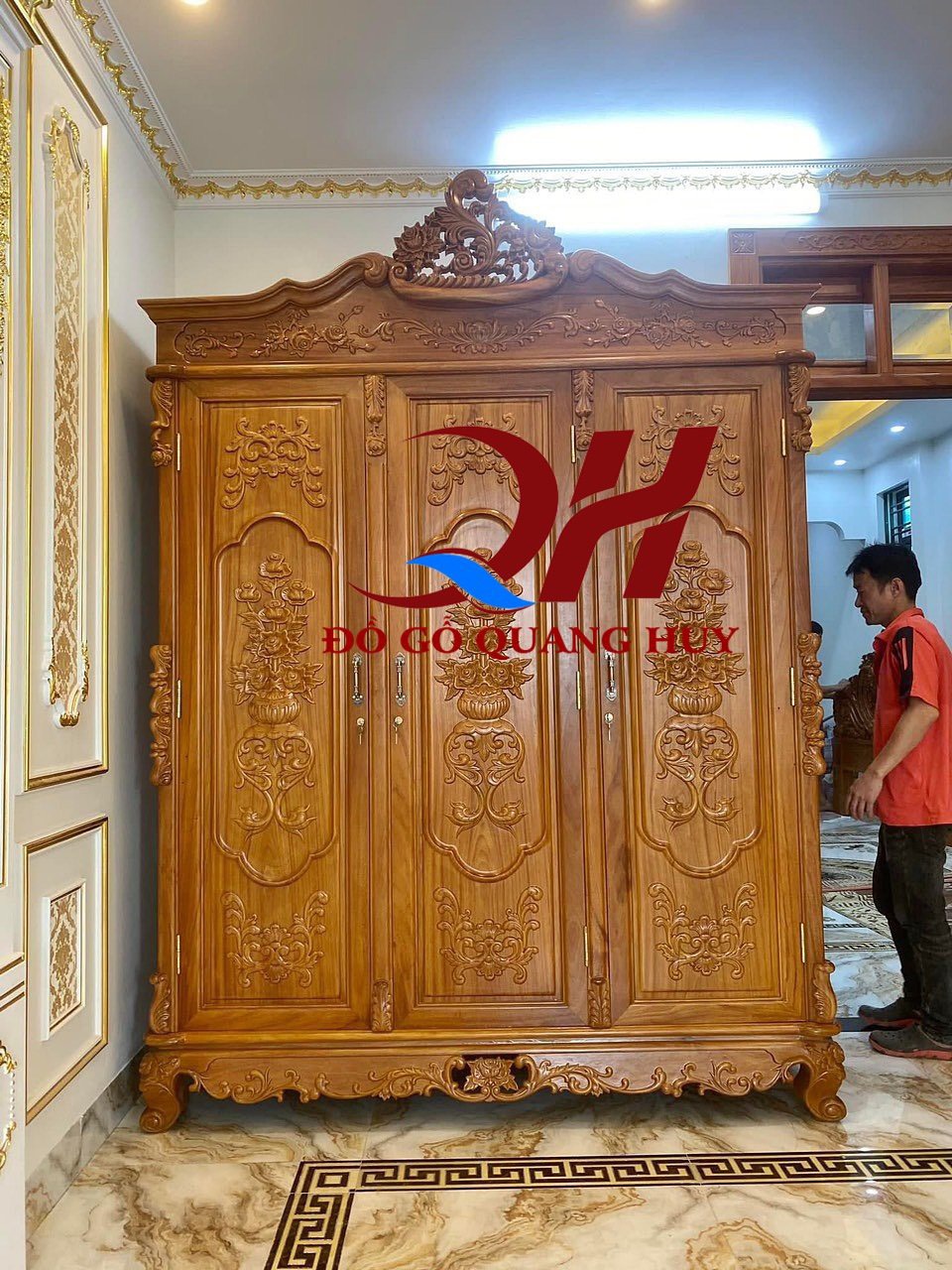 3. Hình ảnh mẫu tủ quần áo tân cổ điển gỗ gõ Nam Phi của Quang Huy